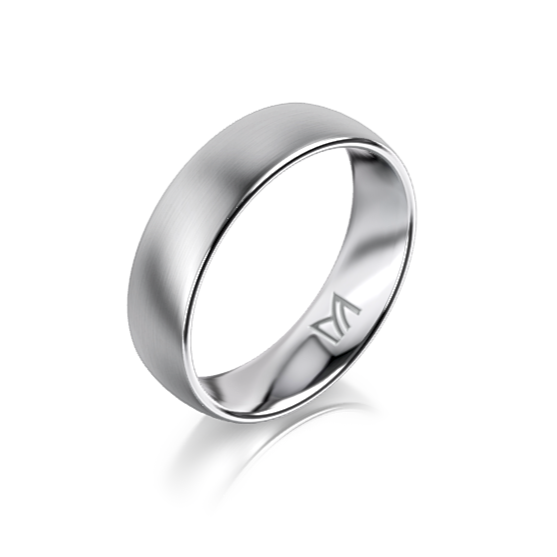 Beide Ringe gefertigt in edlem Platin 950, individuell abgestimmt und mit viel Feingefühl ausgewählt. Der Herrenring von Meister überzeugt durch eine klare Formensprache: Strichmatt mit poliertem Rand, 5.5 mm breit.