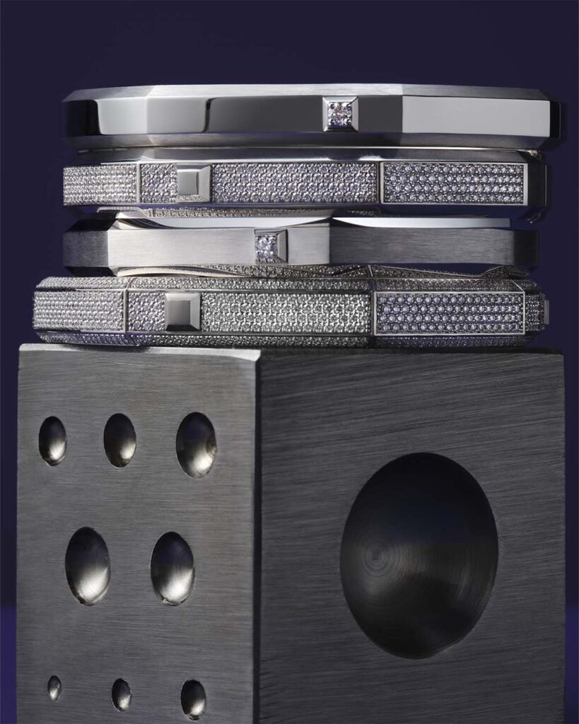 Die Kollektion umfasst mehrere ikonische Designs, die alle die gleiche geometrische Signatur tragen.