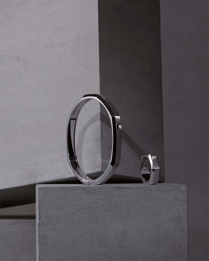 Diese Gegensätze verschmelzen zu einer harmonischen Formensprache. Besonders charakteristisch ist die geometrische Struktur der Kollektion, die auf einem präzise proportionierten Hexagon basiert und so eine neue Dimension von Volumen und Balance schafft.