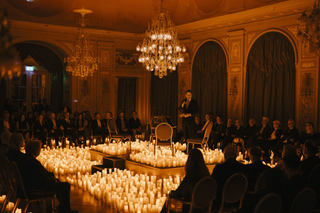 Ein solcher Moment war der Abend, den wir gemeinsam mit Patek Philippe im Grand Hotel Bellevue Palace erleben durften. Ein exklusives Candlelight Konzert erleuchtet von über 3000 Kerzen, eröffnete den Anlass und schuf eine Szenerie von stiller Magie. Ein Streichquartett interpretierte die ikonischen Kompositionen von Hans Zimmer – emotional, präzise, meisterhaft. Wie die Zeitmesser von Patek Philippe selbst.