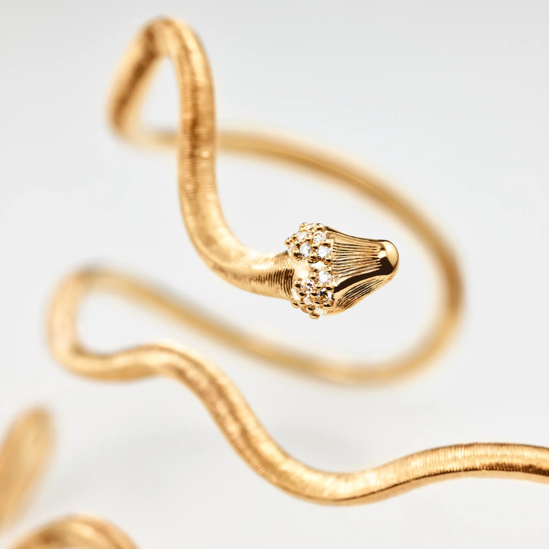 Snakes-Armreif (groß) aus 750/- Gelbgold mit 14 Diamanten von insgesamt 0,08 Karat TWvs | Ole Lynggaard