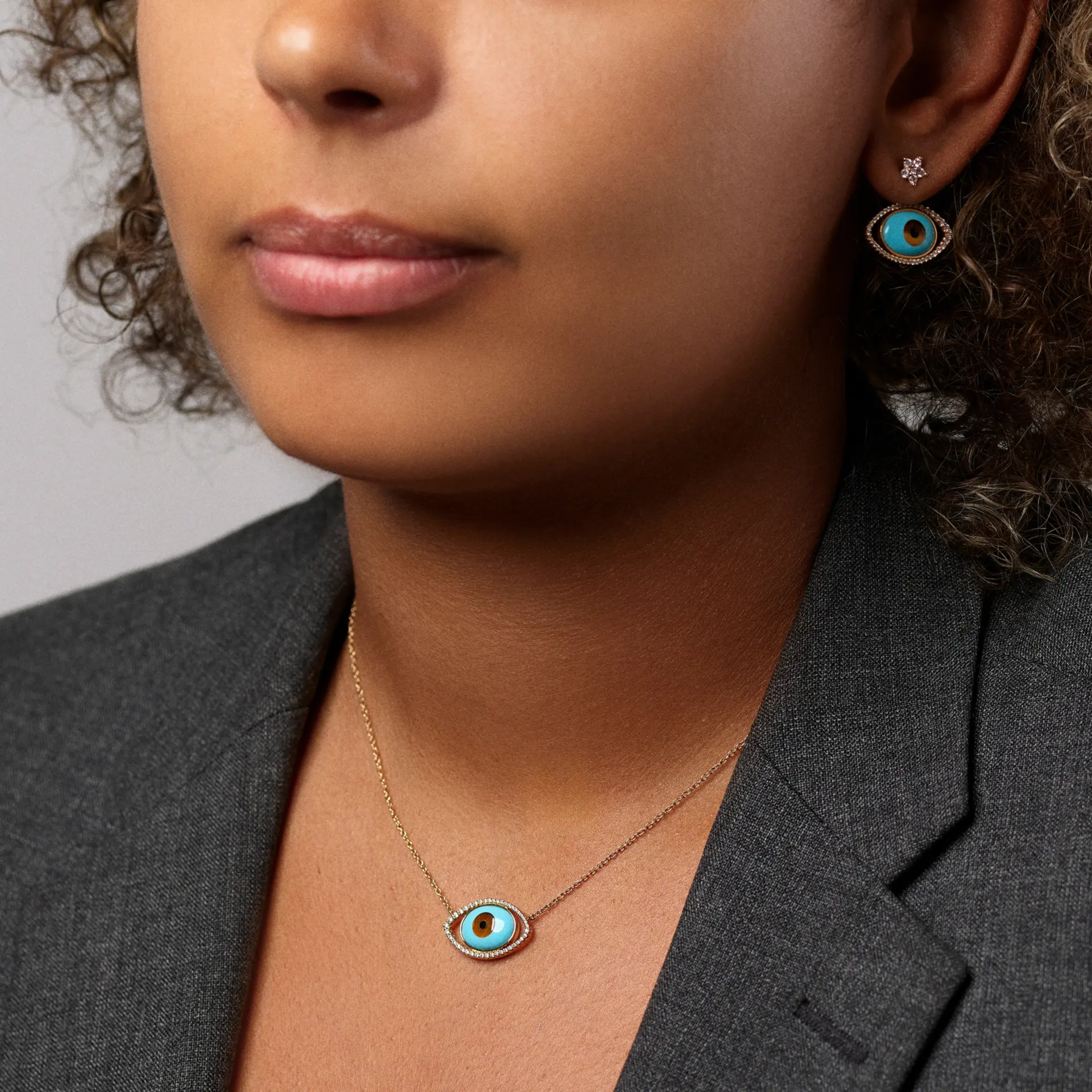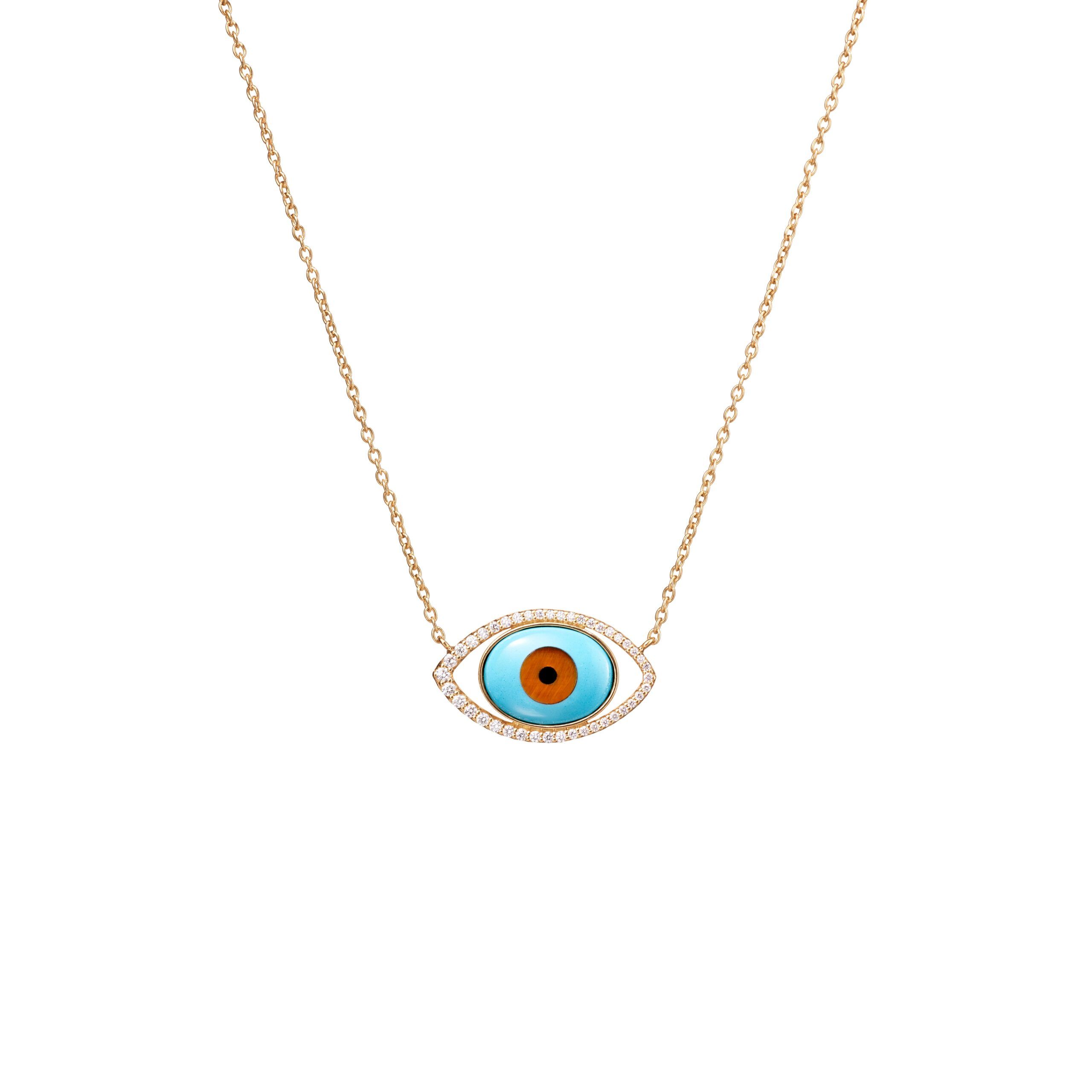 Halskette Evil Eye 45 cm, in Gelbgold, Türkis, Tigerauge-Quarz, Onyx und Diamanten | Ole Lynggaard