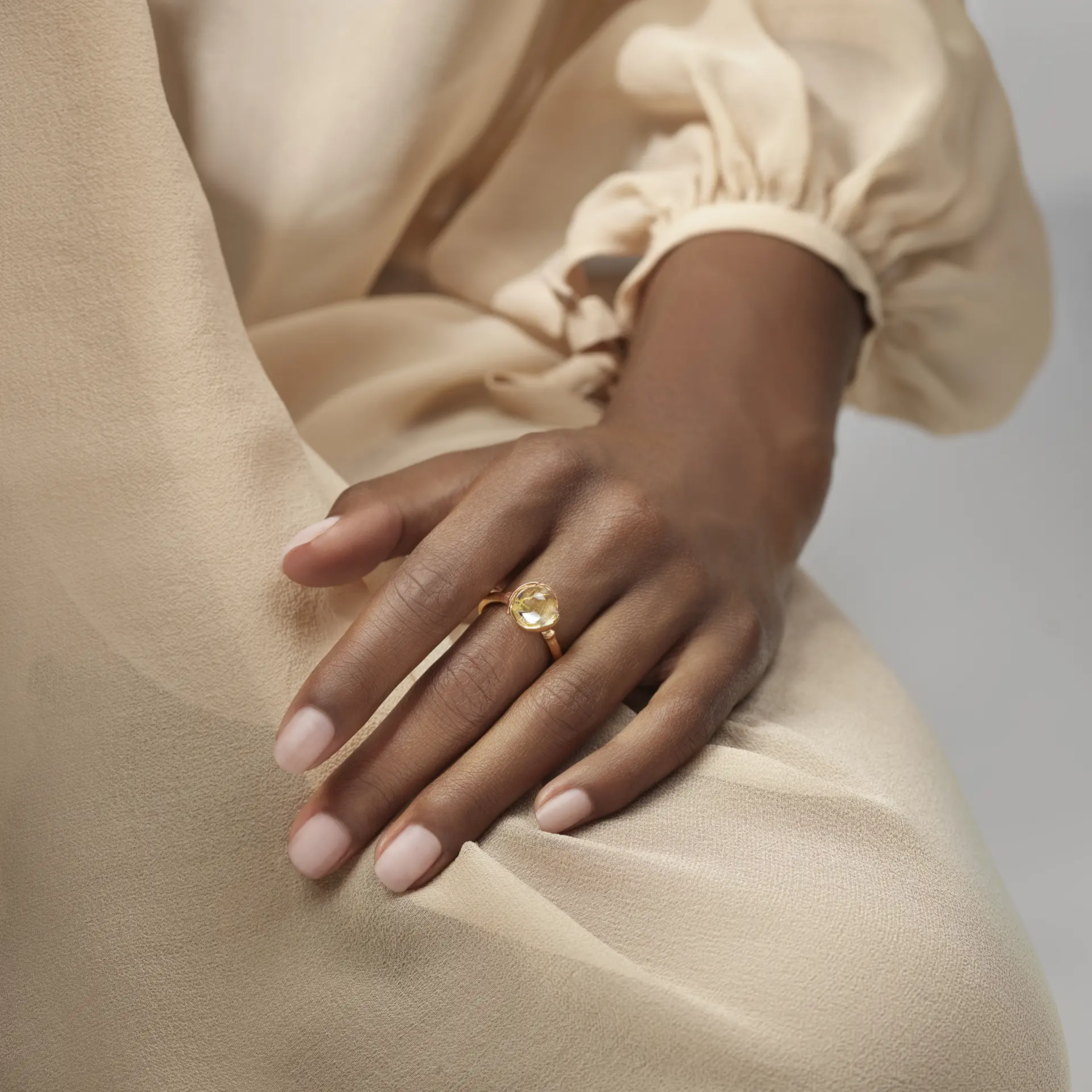 Lotus ring in Grösse 2 in Gelbgold und Roségold mit Rutilquarz | Ole Lynggaard