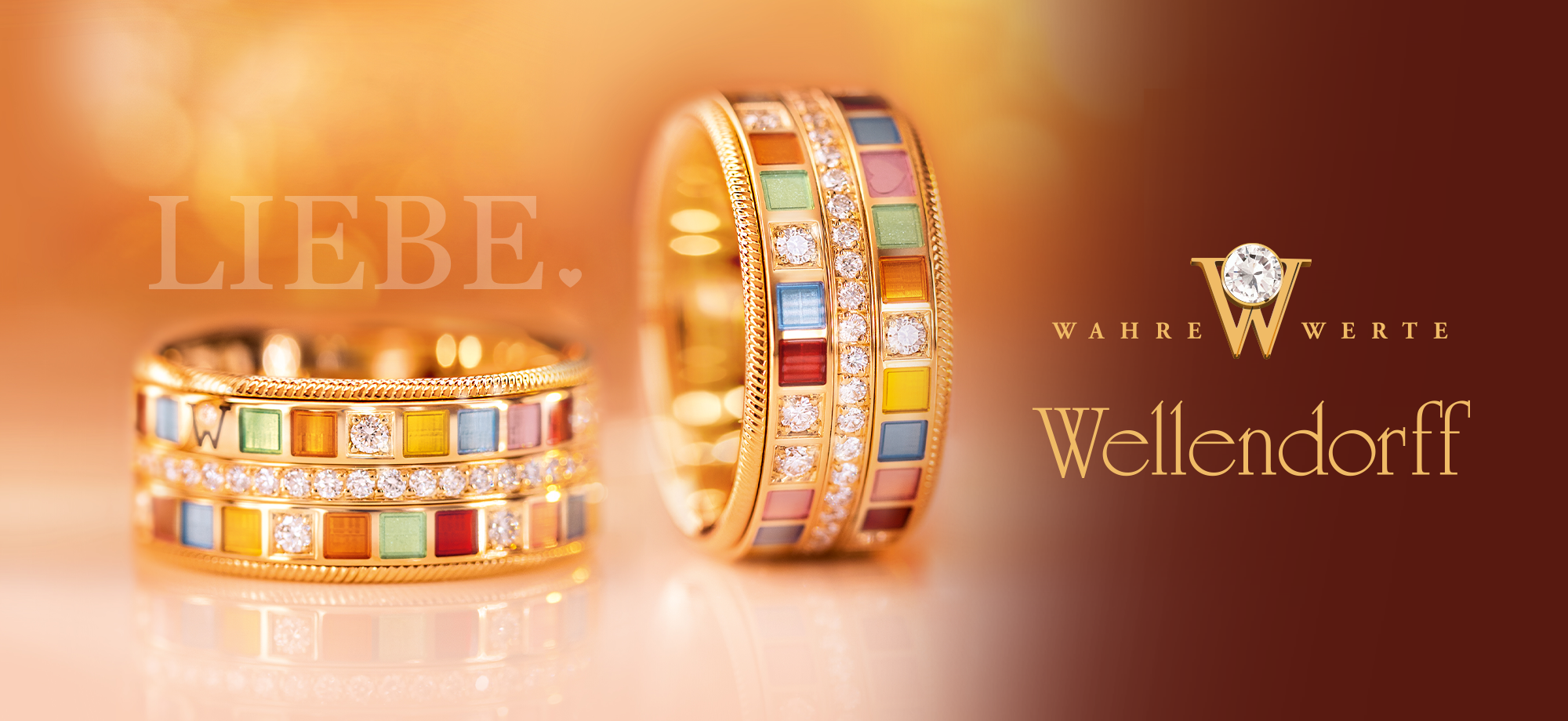 Die verspielten Kollektionen von Wellendorff mit ihrer magischen Ausstrahlung sind unverwechselbar. Edelmetalle, Edelsteine und Kaltemaille werden in raffinierte Formen verwandelt – wie etwa den beliebten Wellendorff-Drehring. Zeitlose Eleganz spiegelt sich im dezent glänzenden Wellendorff-Armband oder in der samtweichen Wellendorff-Kordel mit dem unverkennbaren kleinen Brillant-W wider. «Wahre Werte» ist das Motto der Manufaktur Wellendorff in Pforzheim, wo alle Schmuckstücke einzeln mit höchster Präzision und Liebe zum Detail angefertigt werden.