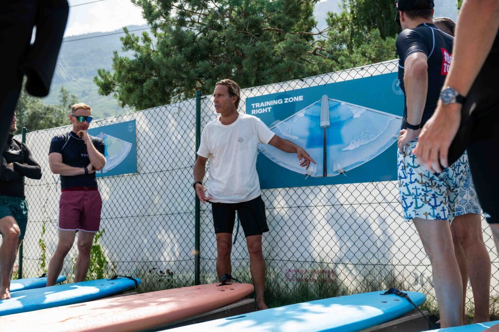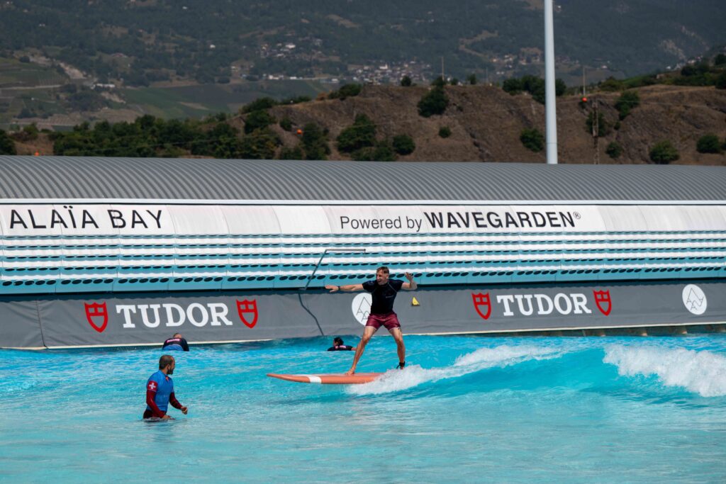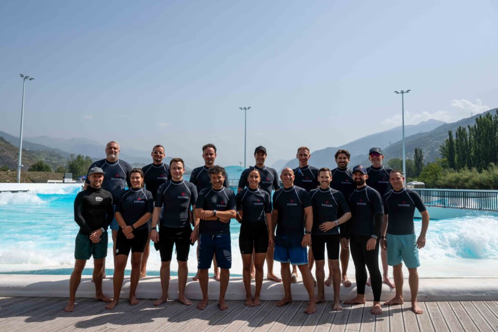 Angekommen in Europas erster Surf-Lagune mitten im Wallis, wechselten wir vom Drehmoment zum Gleiten. Was folgte, war ein kollektiver Moment des Ausprobierens, Scheiterns, Lachens und über sich Hinauswachsens. Ein Tag, der gezeigt hat, dass echter Mut etwas Neues zu wagen, nicht laut sein muss. Denn Uhren von Tudor sind gemacht für echte Herausforderungen – sie begleiten nicht nur die Zeit, sondern auch die Haltung.